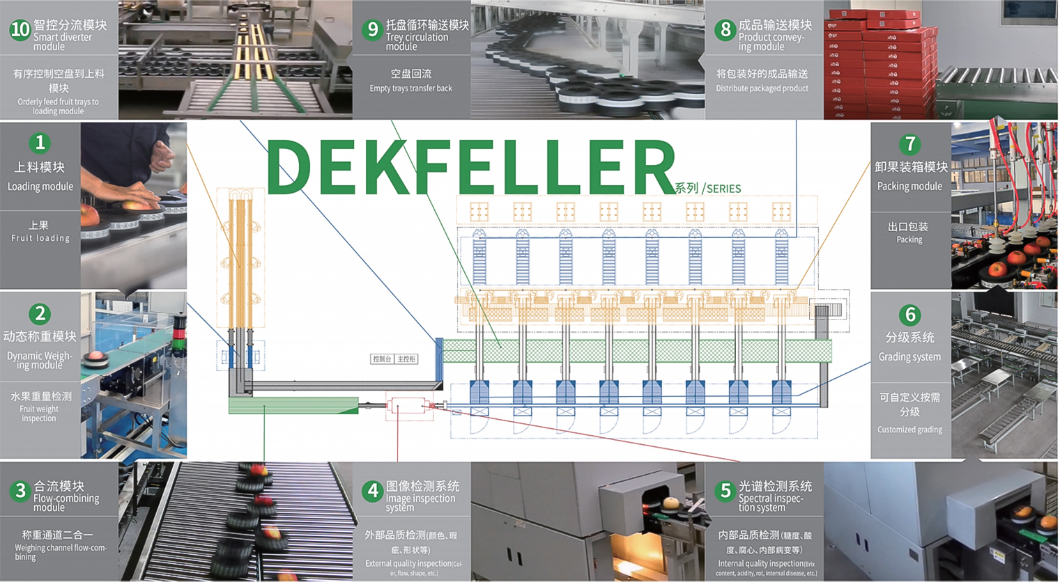 DFL無損分選設備是國內針對果品脆弱型水果分選研發的裝備,根據水果生理特征設計,達到分選過程無損傷的品質分選。區別于傳統的分選方式,水果在設備上滾動,水果與設備、水果與水果都會產生大量的碰撞與擦傷。DFL設備則能完全避免這部分損耗,水果獨立于特制的柔性果托上,全程都處于靜止狀態,從而無損耗。DFL為您的果品保駕護航,降低損耗,提大效率,保障品質。